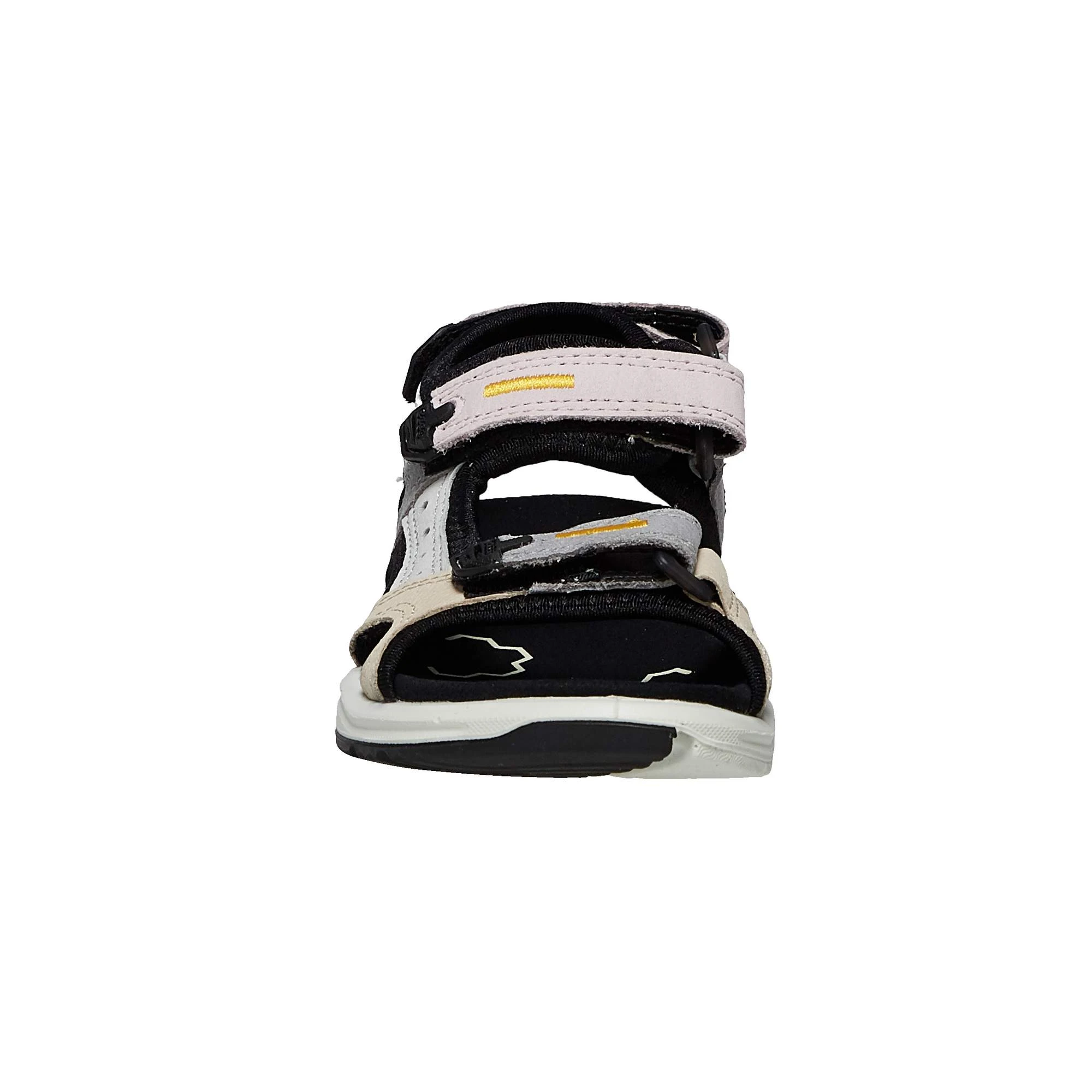 Die zarten Riemen der Sandale bestehen aus hochwertigem Leder, das für höheren Tragekomfort mit weichen Polstern unterlegt ist. Geöffnet und geschlossen werden die Riemen mittels Klettverschlüssen. Das gepolsterte Fußbett und die dämpfende Zwischensohle sorgen für anhaltenden Komfort, auch an langen Tagen. Die Gummi-Laufsohle sorgt für Halt.