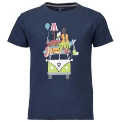 Der Bulli ist in diesem Fall auf einem nachhaltigen Untergrund unterwegs, und zwar auf einem hochwertigen Gewebe aus GOTS-zertifizierter Bio-Baumwolle. Die Baumwolle liegt weich auf der Haut und der bequeme, gerade Schnitt ermöglicht uneingeschränktes Herumtoben am nächsten Reiseziel.