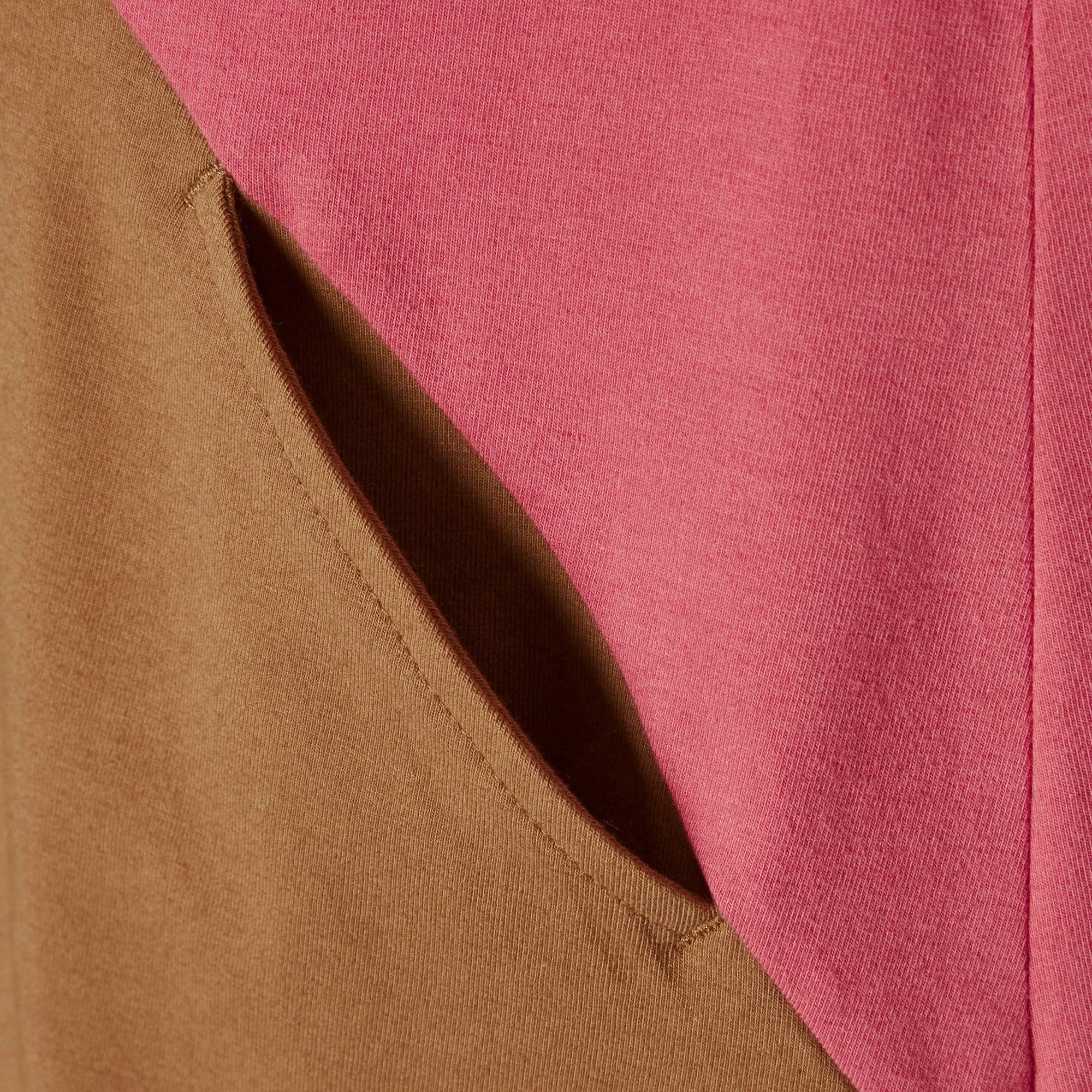 Durch seinen hohen Baumwoll-Anteil liegt das Kleid angenehm weich auf der Haut. Nachhaltig ist das Material auch, denn die Baumwolle stammt aus kontrolliert biologischem Anbau. Der Schuss Elasthan im Gewebe macht das Kleid schön dehnbar und bequem. Der nach unten hin ausgestellte Schnitt sorgt für die nötige „Beinfreiheit“ beim Spielen und Toben.