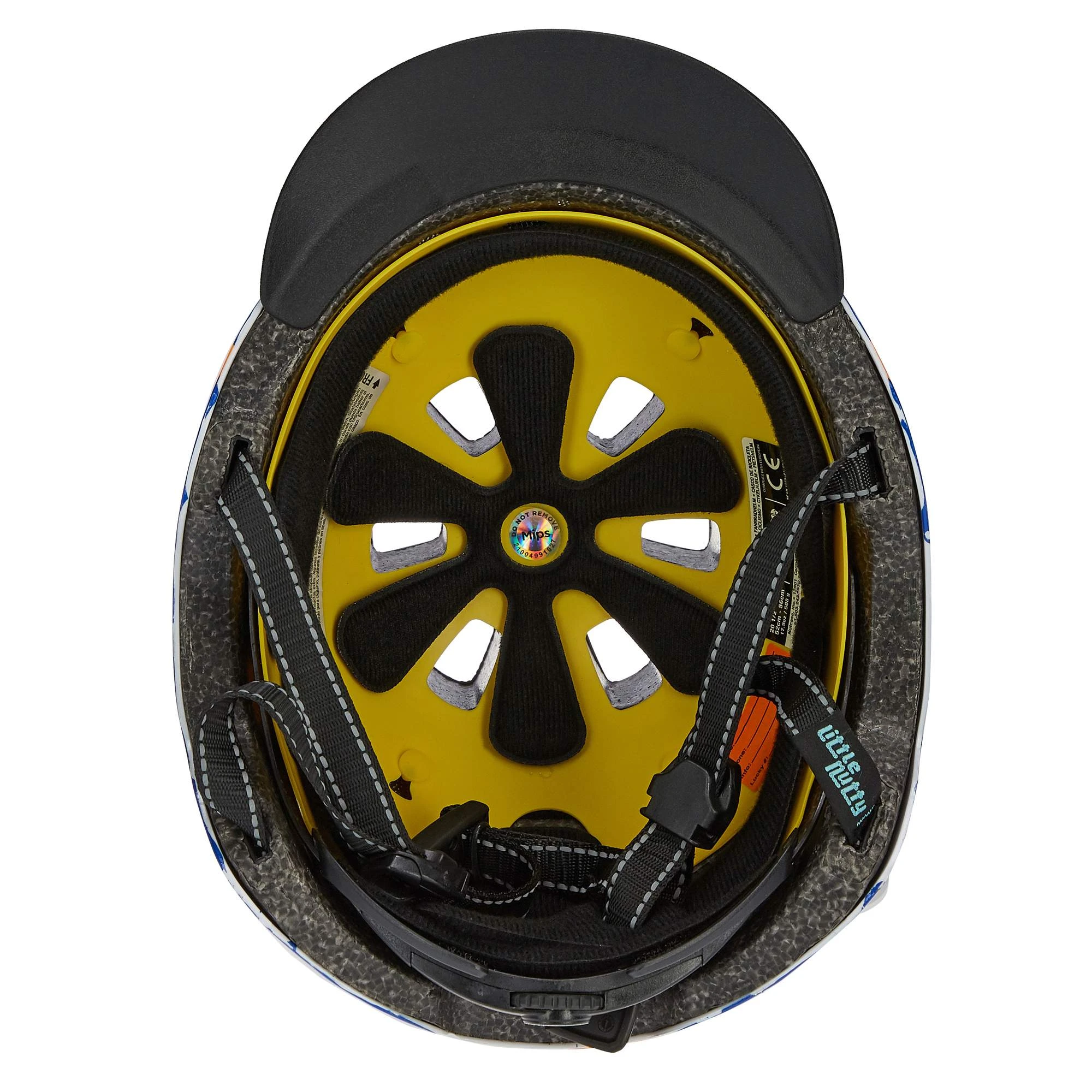 Über ein Drehrad stellst du den Little Nutty MIPS Helm auf den Kopfumfang deines Kindes passgenau ein. Der Fidlock-Verschluss des Kinnriemens ist kindgerecht und supereinfach zu bedienen: Der kombinierte magnet-mechanische Verschluss findet fast von ganz alleine zusammen und hält dann sicher. Auch das Öffnen passiert mit einfachem Auseinanderschieben. Dank der zehn Belüftungsöffnungen in der Helmschale ist auch für ausreichend Kühlluft gesorgt, wenn es mal richtig „rund geht“.