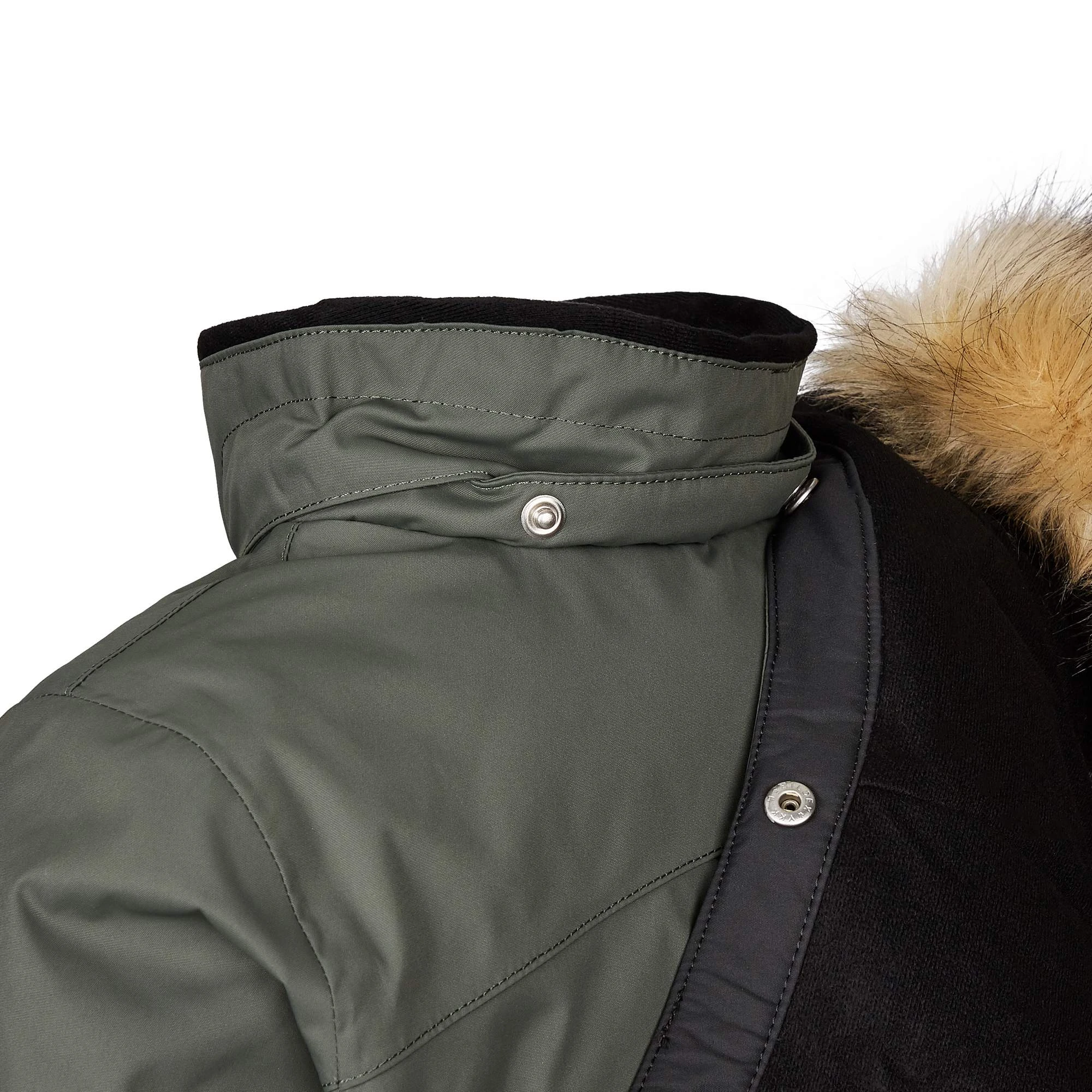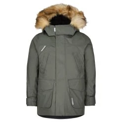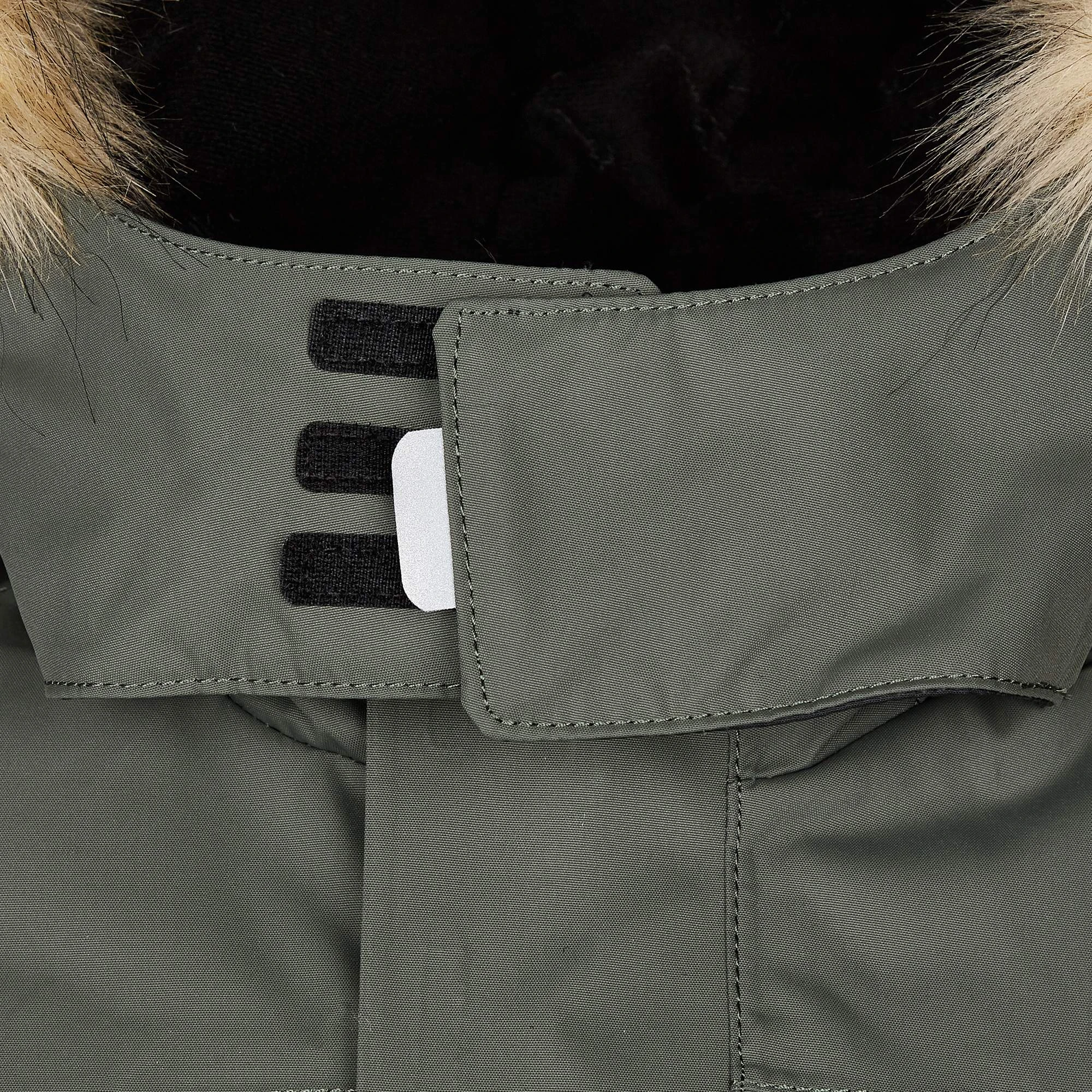 Zum hohen Wärmekomfort gesellt sich eine komfortable Ausstattung. Die bequeme Kapuze sorgt für wohlige Wärme am Kopf. Genau wie der modische Kunstfellkragen kann sie abgenommen werden, wenn nicht benötigt. Sind deine Kinder auf Erkundungstour in der schneebedeckten Natur, können sie wertvolle Fundstücke in den großen RV-Taschen unterbringen. Oder sich hierin die Hände ein wenig wärmen. Und die Windschutzleiste am Front-RV verhindert das Eindringen von kalter Luft.